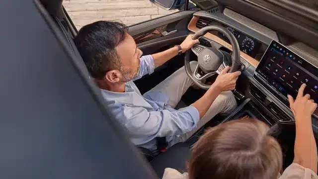 El Nuevo Tiguan 2025 ofrece una experiencia única en su interior. Disfrute de la comodidad con asientos delanteros con función de masaje y regulación de altura. El volante multifuncional y la pantalla táctil completan la experiencia. *Aplica versión R-Line